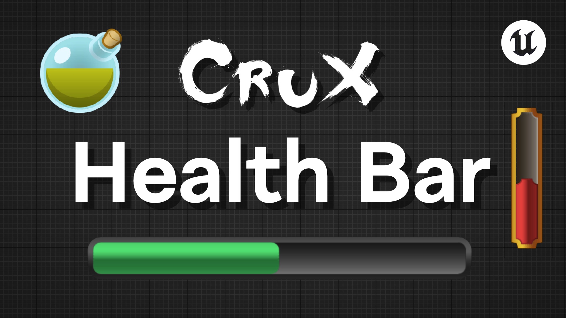 The Crux Health Bar is a highly customizable UMG/Slate widget designed for all types of games. It extends the standard progress bar functionality with built-in support for "damage preview", smooth "catch-up" fading animations, and dual-axis filling strategies.
