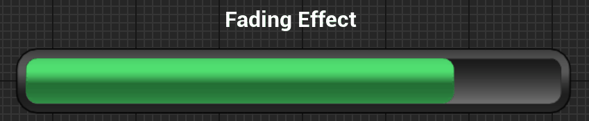 The Fade layer provides a "catch-up" animation, often used to visualize recent damage (sometimes called a "lag bar" or "chip damage"). When the current value drops, the main bar drops instantly, but the fade bar lingers and then shrinks smoothly.