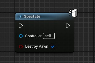 Spectatenode: Allows you to set the player as spectator properly, without the need to do it in C++ nor doing a "false" spectator mode by just possessing your spectator pawn. This node also flags properly the controller as spectator.